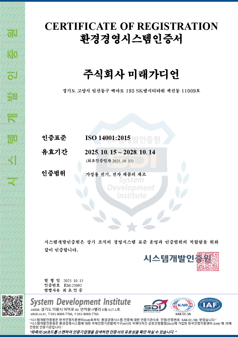 환경경영 시스템 인증서 등록