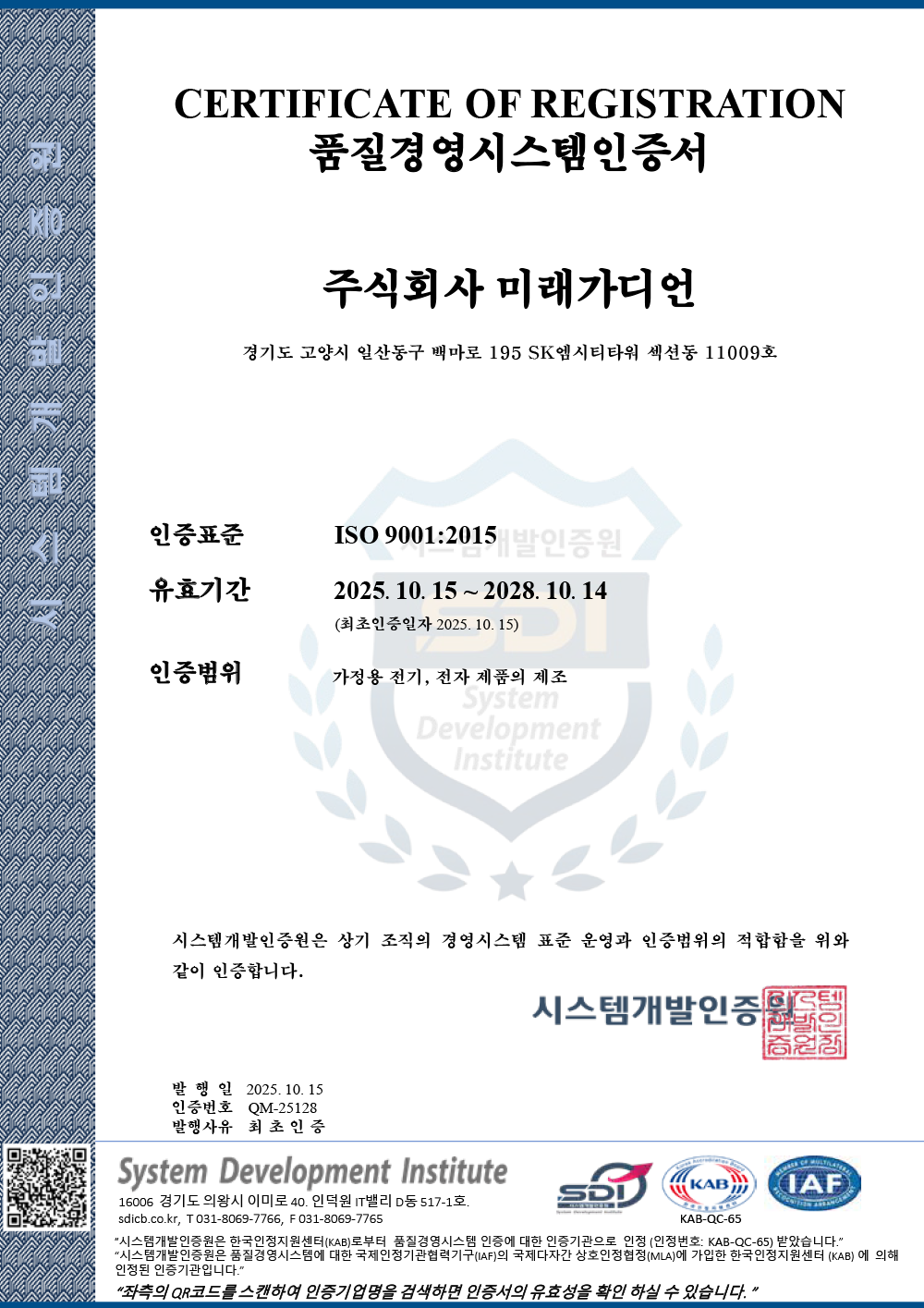 품질경영 시스템 인증서 등록